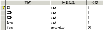 我们先建立一个数据表,结构如下图(LID 为左值,RID 为右值,Tree 为节点深度,Name 和 ID 就不多说了,节点的索引和名称)