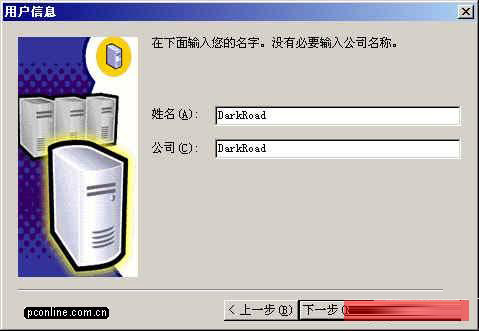 在 "用户信息" 窗口输入用户信息并接受软件许可证协议