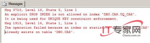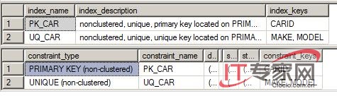 运行SP_HELP CAR显示,the engine已经创造了包括这个约束和一个索引支持在内。